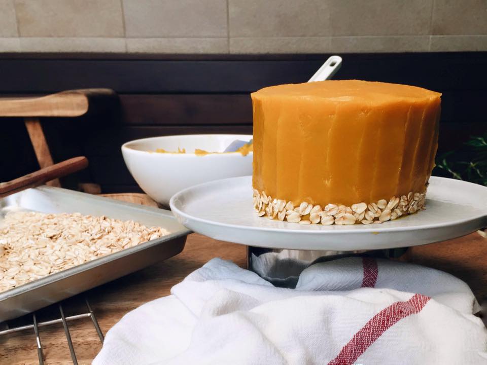 | The frosting will not be super smooth due to the pumpkin fibers. But nothing some toasted oatmeal cannot hide. |